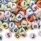 Alphabet letters acrylic translucent beads, 6x6mm cube and 3.5mm hole.